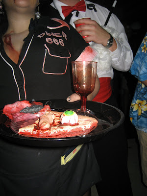 I did, however, run into someone at a party with a quite unique pizza-related costume. She was dressed up as Deadra and walking around with one of the most appetizing looking slices of pizza I’ve ever seen: fresh mozzerella, a bit of tomato sauce, an eyeball and — to top it off — a finger! Yum!