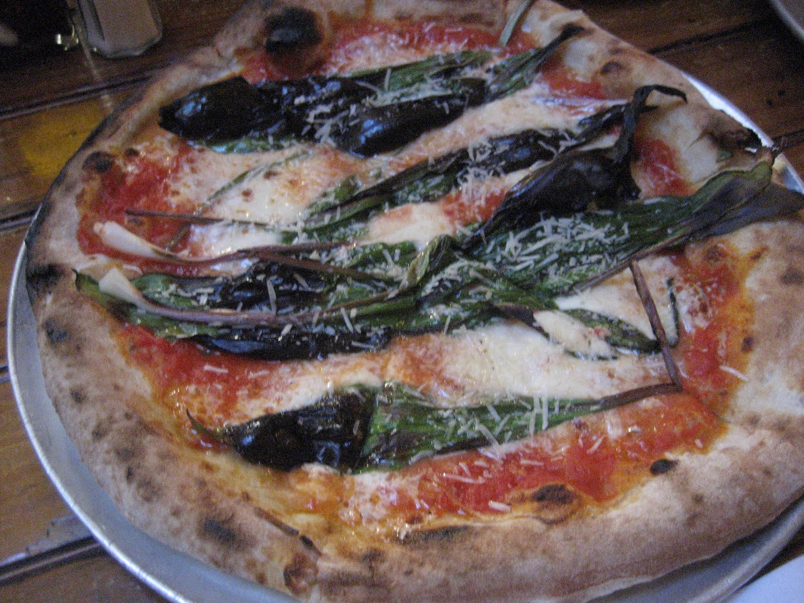 The J Street (tomato, mozzarella, ramps, pecorino) featured similar ingredients to Motorino’s ramp pie (ramps, marinara sauce, pecorino), but the ramps themselves were used quite differently than at Motorino. While Roberta’s takes the entire leaf of the vegetable and serves it on top of the pie, Motorino dices the ramps before they’re placed on the pie. I’m not sure I prefer one over the other. But what I do know is that ramps are delicious and if you ever see a ramp pizza on any menu you should get it.