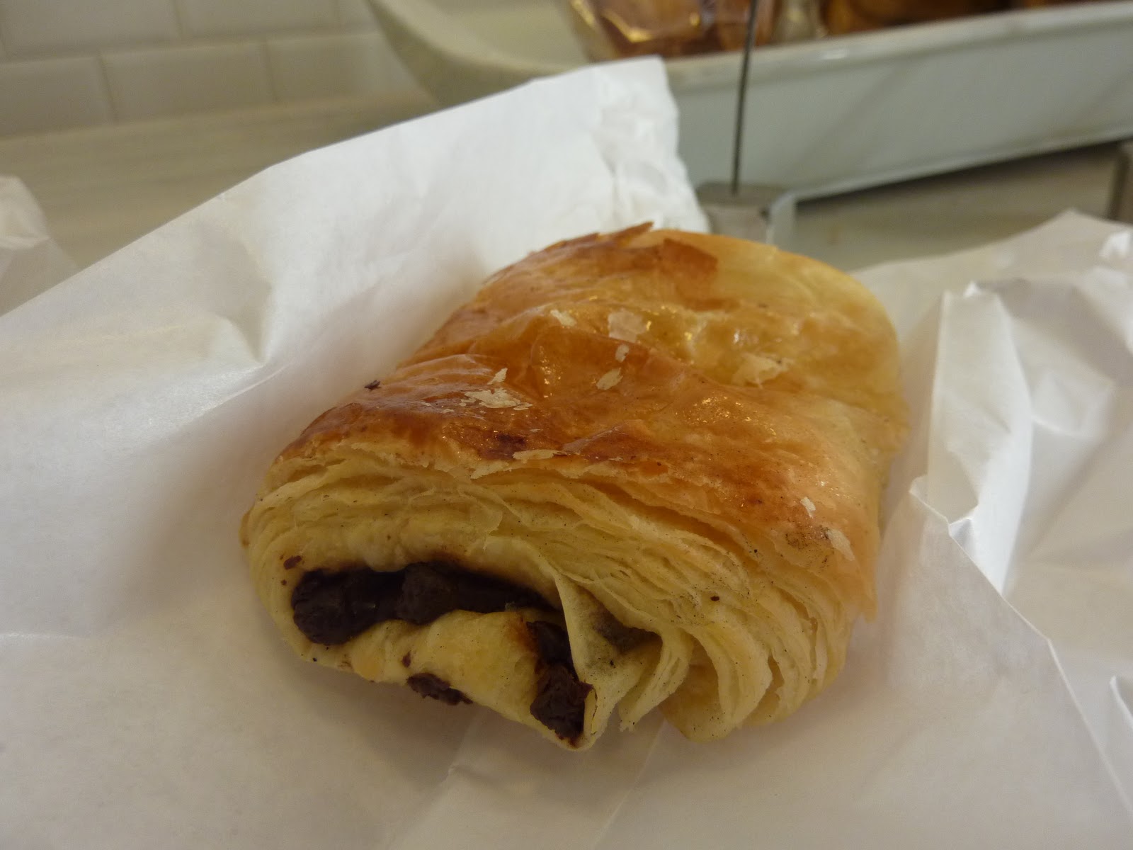 Among all of these baked goods, however, I noticed a tray of somewhat neglected pizza-like treats. The small, disc-shaped breads were covered with cheese, sauce, spices, and toppings. Sounds like pizza to me! I ordered one with olives and it was put back in the oven to be reheated. When I bit into the pizza, however, it was still just lukewarm. It could have definitely benefited from a few more minutes in the oven. Although it had probably only been sitting out for a few hours, it didn’t taste as fresh as the pastries I tried.