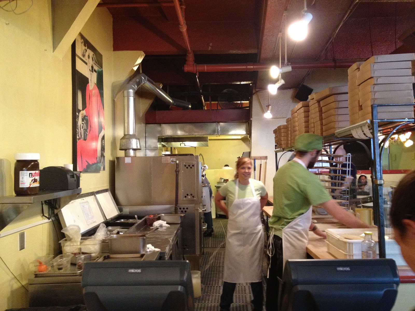 Their menu features about a dozen pies which come in both small and large sizes. The small pies are almost too small to fill up one person, although they offer a nice option for trying multiple pies. If you’re going for substance, a large pie is the way to go — easily eaten by two people and possibly one hungry individual. Since this was my first time there, my girlfriend and I decided to order two small pies: Cipollo without pancetta (red onion confit, mozzarella, and ricotta) and Alice (basil pesto, mozzarella, fresh tomato, garlic spinach, goat cheese, parm).