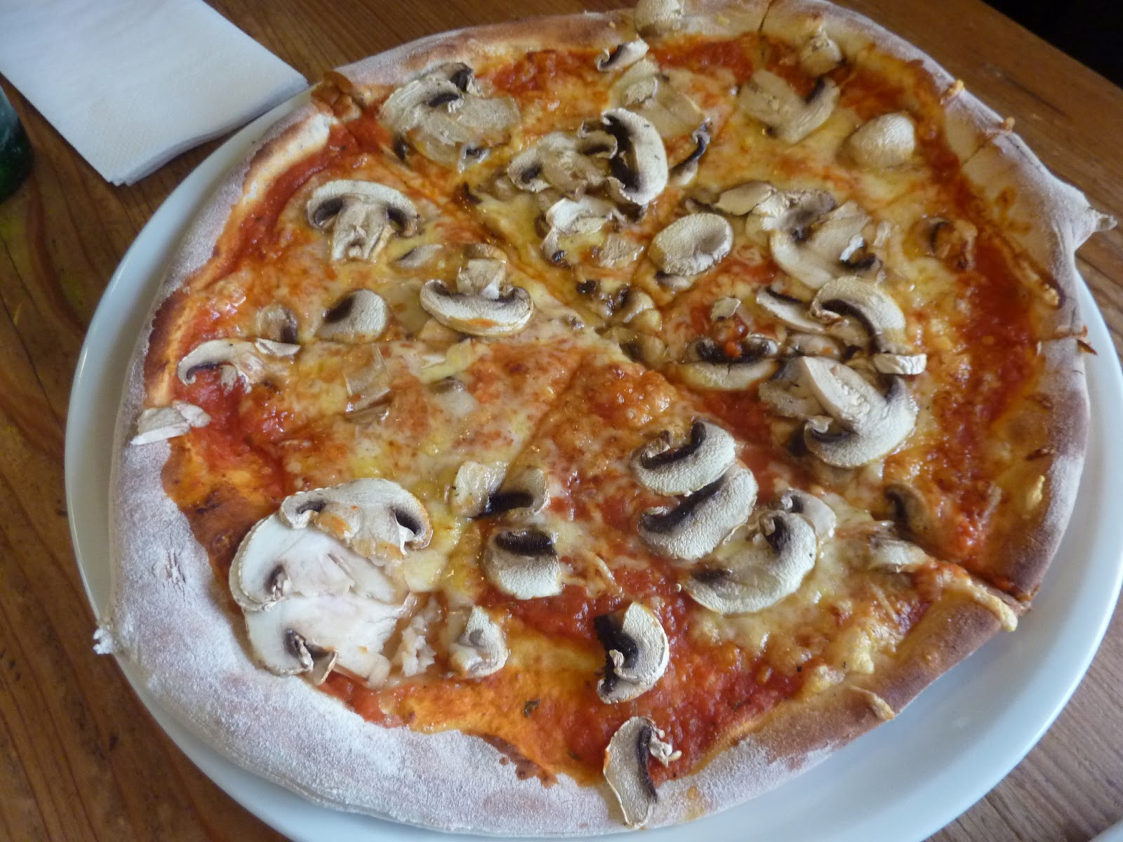 I enjoyed both pies although they were a bit on the oily side — even for someone like myself who enjoys oily pies. The taste and texture was actually slightly reminiscent of one of my favorite hometown pizza places in Maryland: Guiseppi’s Pizza. I liked the cheese and sauce, but the crust was a little floury and perhaps could have benefited from another 30 seconds in the oven. This was also reflected in the mushrooms which, although tasty, were slightly undercooked for my liking. The personal pies cost 4.50 Euros and 5.80 Euros, respectively, and a single pie will certainly fill you up.